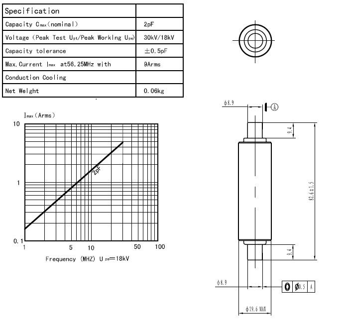 CKT2/21/9型固定陶瓷高压真空电容器采用陶瓷外壳、真空介质、具有耐压高、体积小、Q值高、性能稳定可靠价格低廉等特点,广泛用于感应加热、介质加热、通讯、广播等设备。