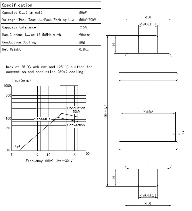 CKT50/35/90固定陶瓷高压真空电容器采用陶瓷外壳、真空介质、具有耐压高、体积小、Q值高、性能稳定可靠价格低廉等特点,广泛用于感应加热、介质加热、通讯、广播等设备。