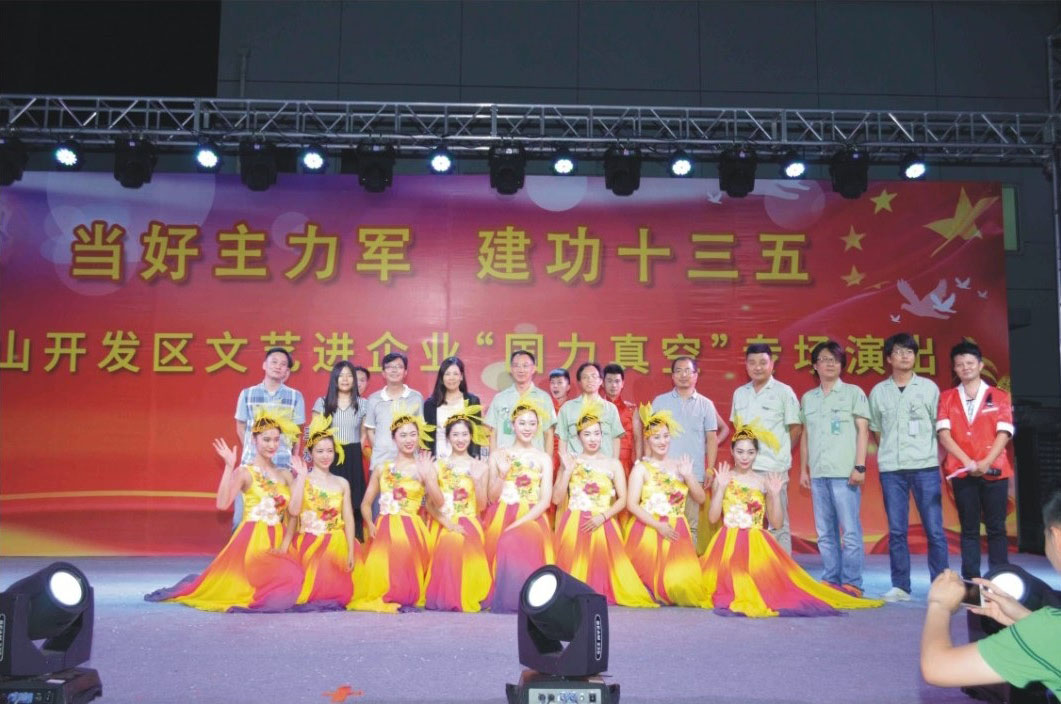 全省广大职工和劳动群众正在深入贯彻习近平总书记新的希望和"三个着力、四个坚持"的总体要求,保持昂扬向上的锐气和奋勇争先的激情,甩开膀子实干,开动脑子善干,为了贯彻"当好主力军,建功十三五"2016年8月1 日我市开发区总工会摆手内企工会联合会及w66利来国际真空电器有限公司举办文艺进企业的专场演出。
